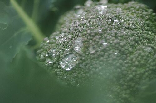 ブロッコリーに溜まった露。 光がもっと欲しかった・・・。
