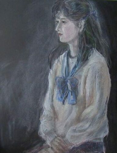 「風」潮風を受けてはしゃいでいる孫(2)の小学前半のころ。ちょっと大人っぽい表情になってしまった。 (~_~;) えへ、似せないで描くので、どんどん本人から離れてしまいます〜〜〜!! (~_~;)